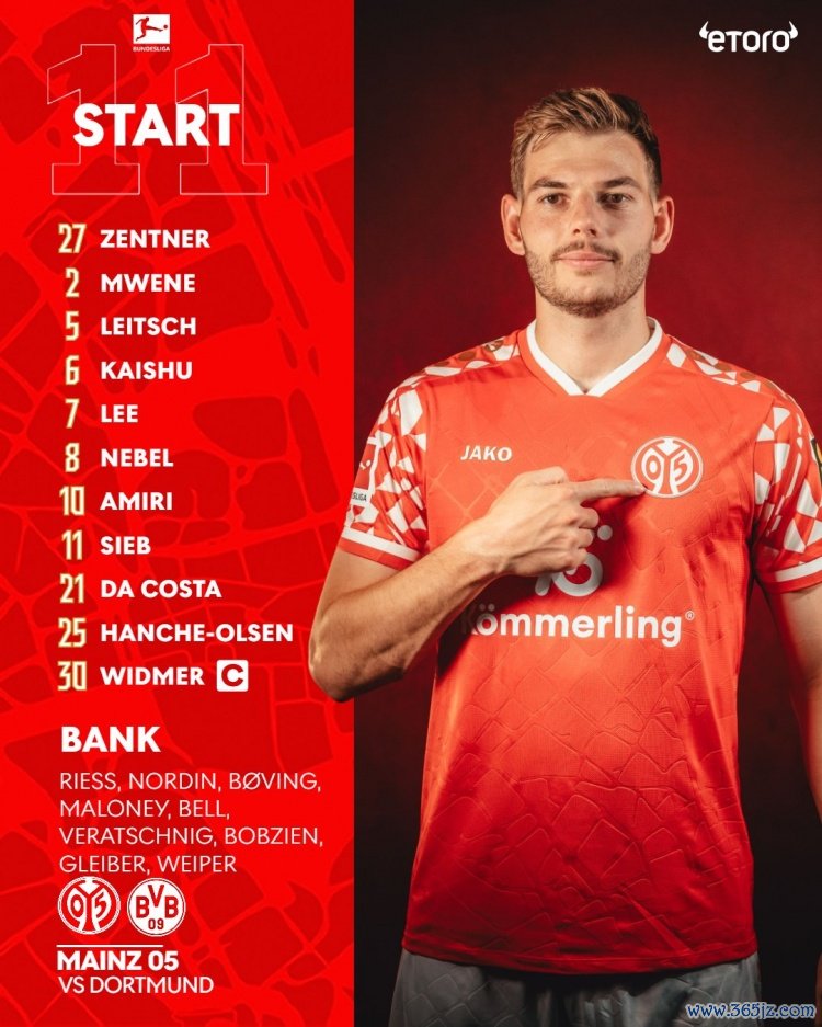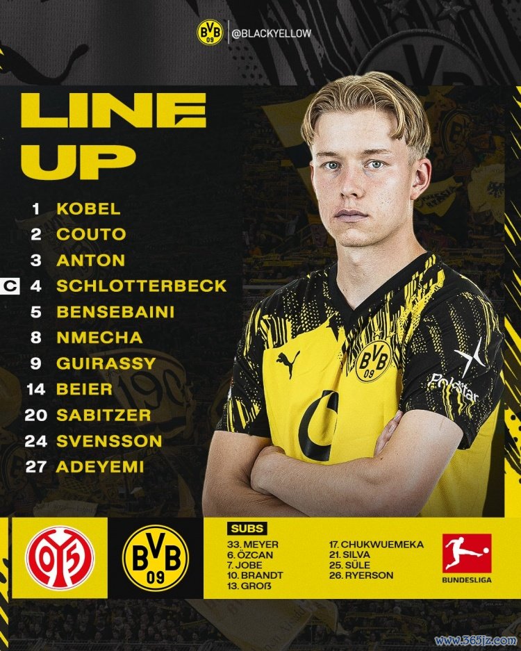 多特vs美因茨杆位:吉拉西、施洛特贝克、李在城、佐野海舟在列