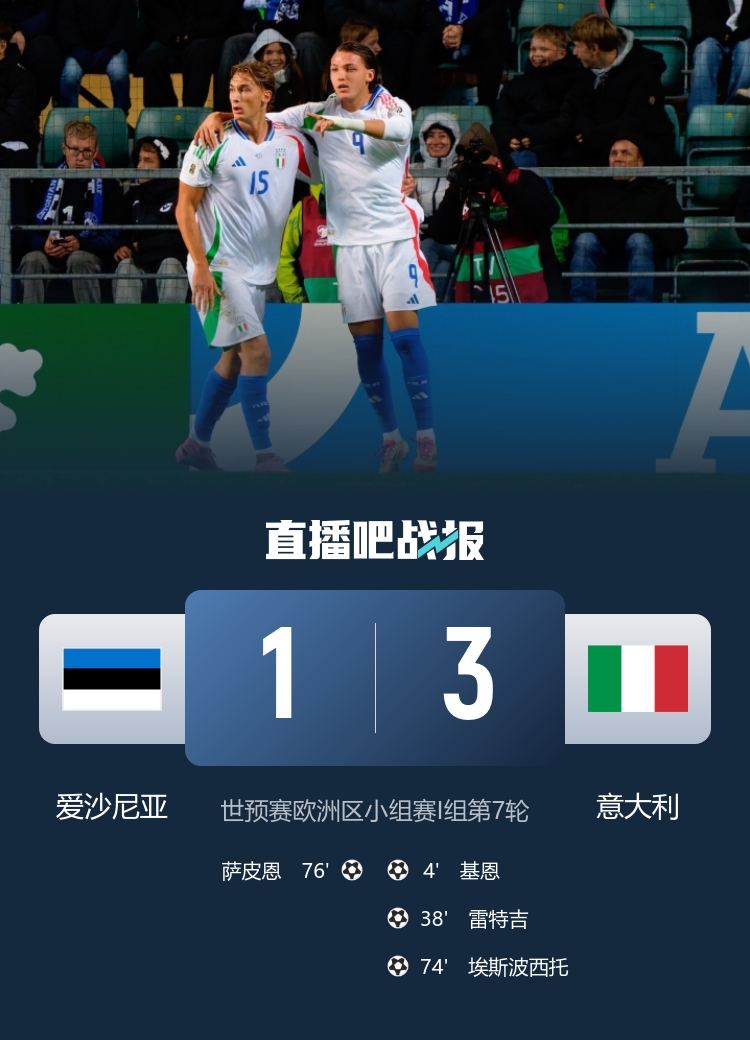 四连胜 !意大利3-1爱沙尼亚 小基恩破门后伤退多纳鲁马送礼