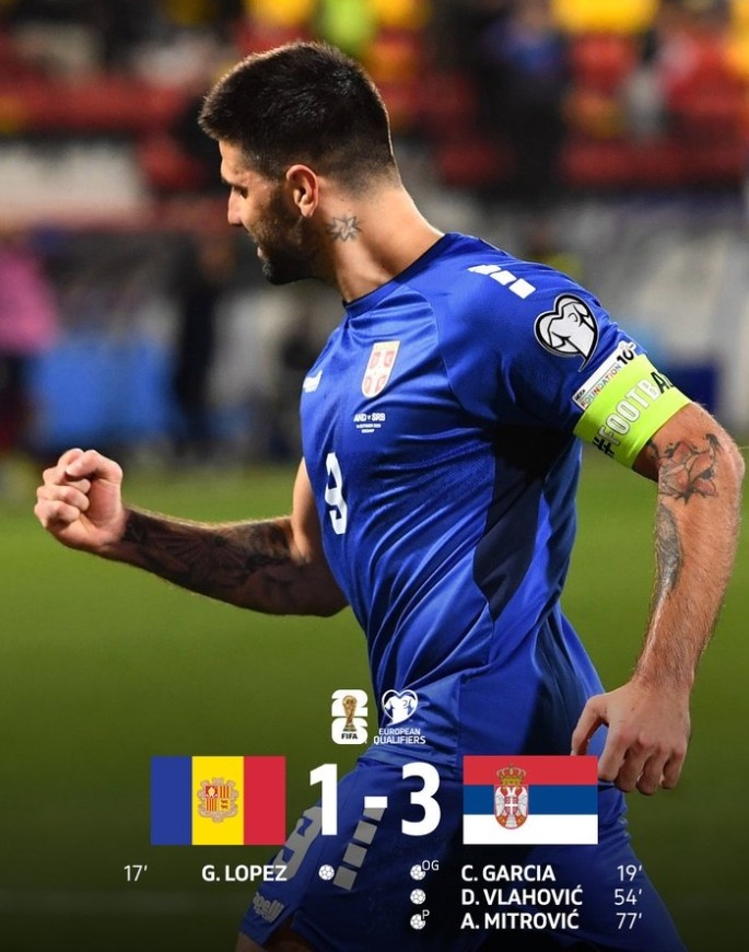 世预赛-塞尔维亚3-1客胜安道尔 弗拉霍维奇破门米特洛维奇点射