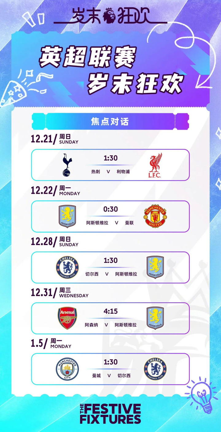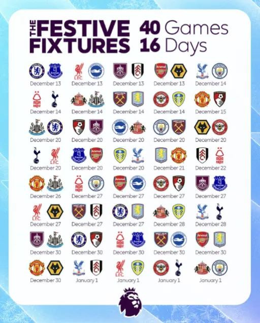 虽然今年的节礼日是特殊情况,但“岁末狂欢”的节奏不变,从12月20日到1月4日,英超将会在16天内进行4轮40场赛事 。这个冬天,我们一起看英超,一起岁末狂欢!