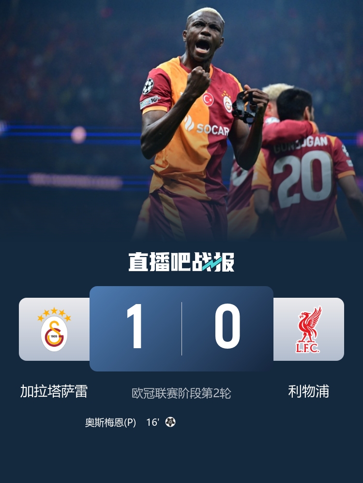 本轮欧冠,利物浦0-1不敌加拉塔萨雷,利物浦在职业联赛 输给水晶宫之后,利物浦10月马上还将有一连串硬仗。