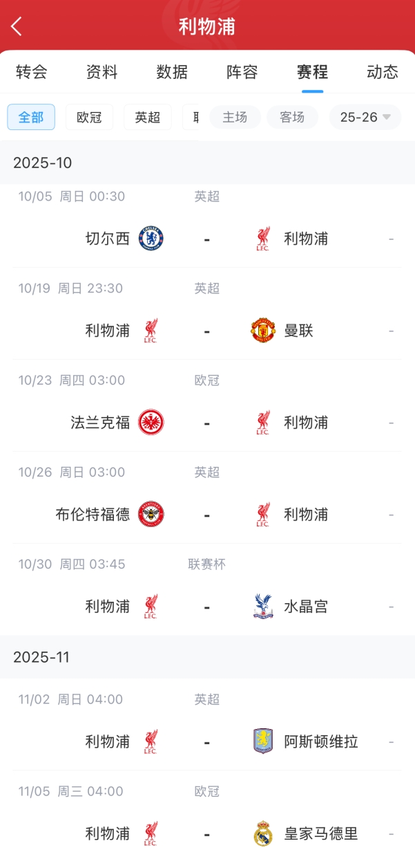这赛程顶得住❓利物浦2连败,10月将战蓝军曼联法鹰水晶宫