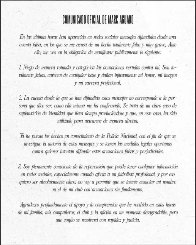 10月4日讯 埃尔削球员马克-阿瓜多近日发布官方声明,坚决否认了社交媒体上流传的关于他骚扰和威胁一名女性的指控。