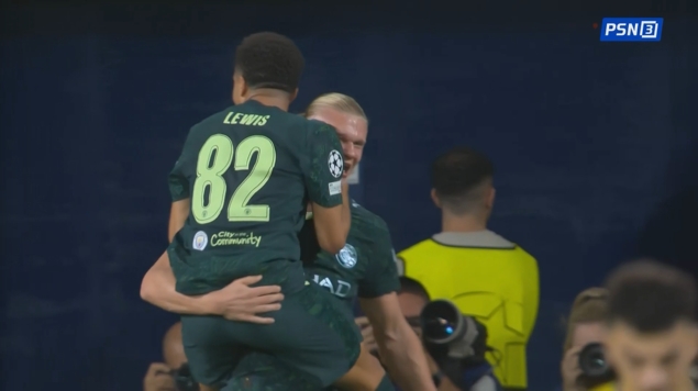 连续12场破门!哈兰德接刘易斯横传抢点捅射破门 曼城1-0领跑 黄潜