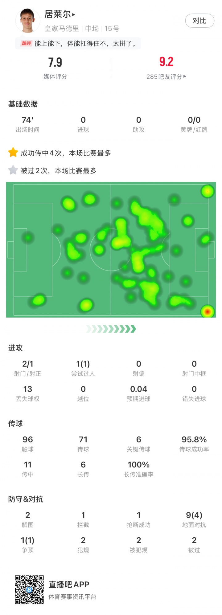 居莱尔被欧足联技术观察小组评选为本场最佳球员。该小组评价称:"这位中场球员球员在防卫 端的贡献同样出色,足球直播无插件免费在线观看而他在赛事 阅读、传送球 组织、任意球处理以及持球时的从容自信更是令人印象深刻。"