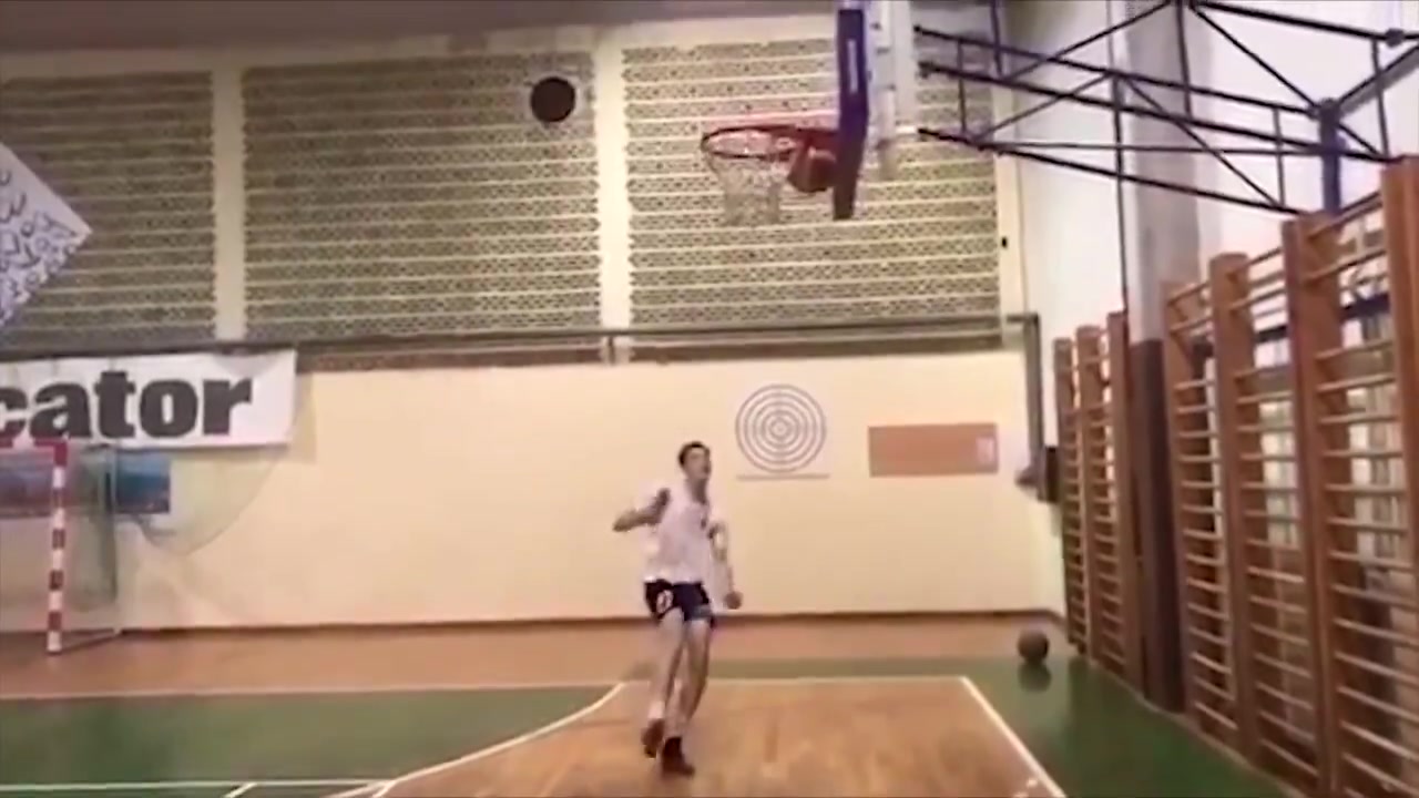 舍什科: 没错是我!当时球卡在篮球框 上,我突发奇想用脚去够,结果成功了。后来我们特意重拍了一遍。
