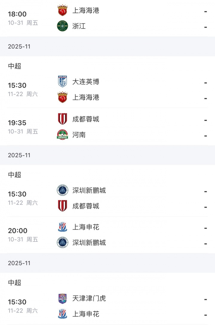 最后两轮海港vs浙江、英博,蓉城vs河南、深圳直播足球直播网,申花vs深圳、津门虎!