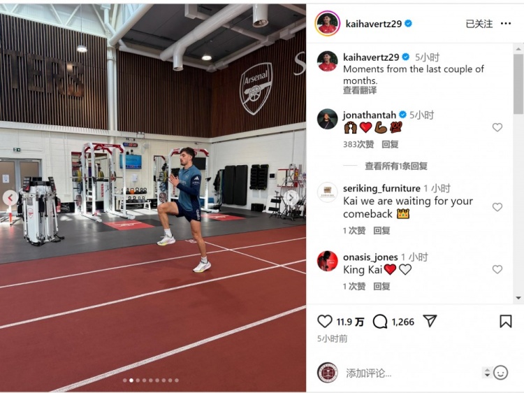 朝着复出迈进!哈弗茨社媒晒复健 练习 和生活照片