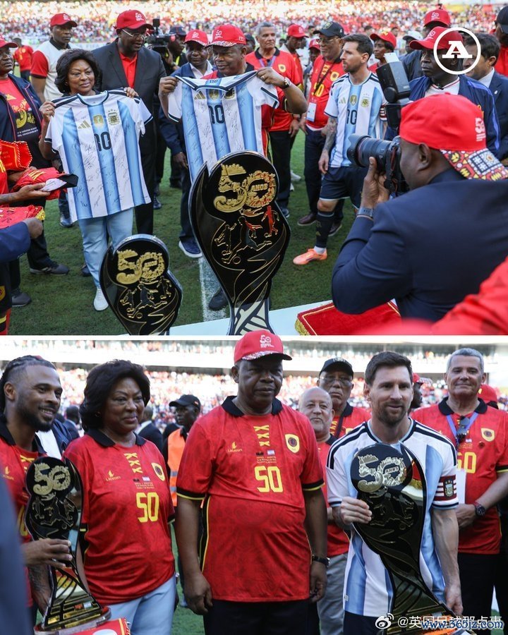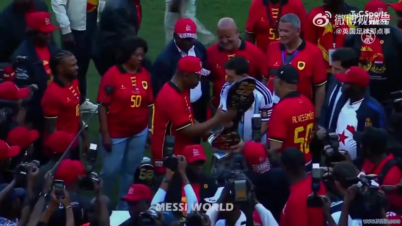 阿根廷与安哥拉赛事 前,梅西将运动活动 服 赠予安哥拉总统,足球直播无插件免费在线观看总统回赠他一座纪念安哥拉独立50周年的特别奖杯。