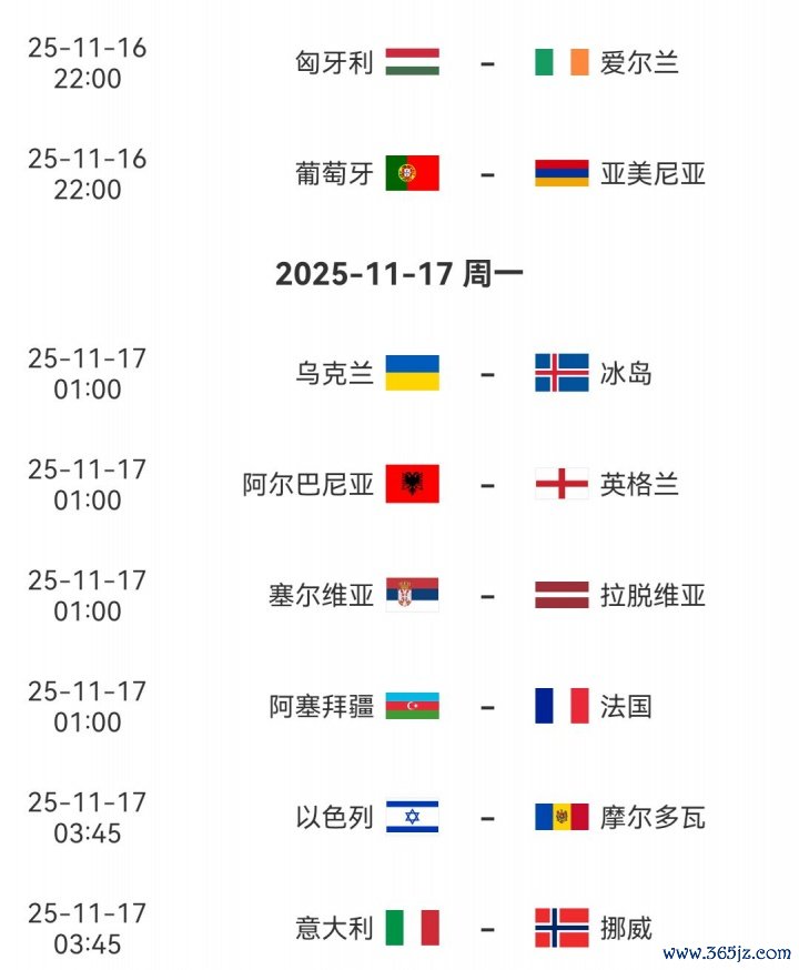 北京时间今晚和明日凌晨,多支球队将出战,足球直播无插件免费在线观看其中葡萄牙将迎战亚美尼亚,意大利将迎战挪威。葡萄牙赢球即可确保小组头名出线,挪威客战意大利,有望锁定头名,时隔27年重返世界杯赛 !